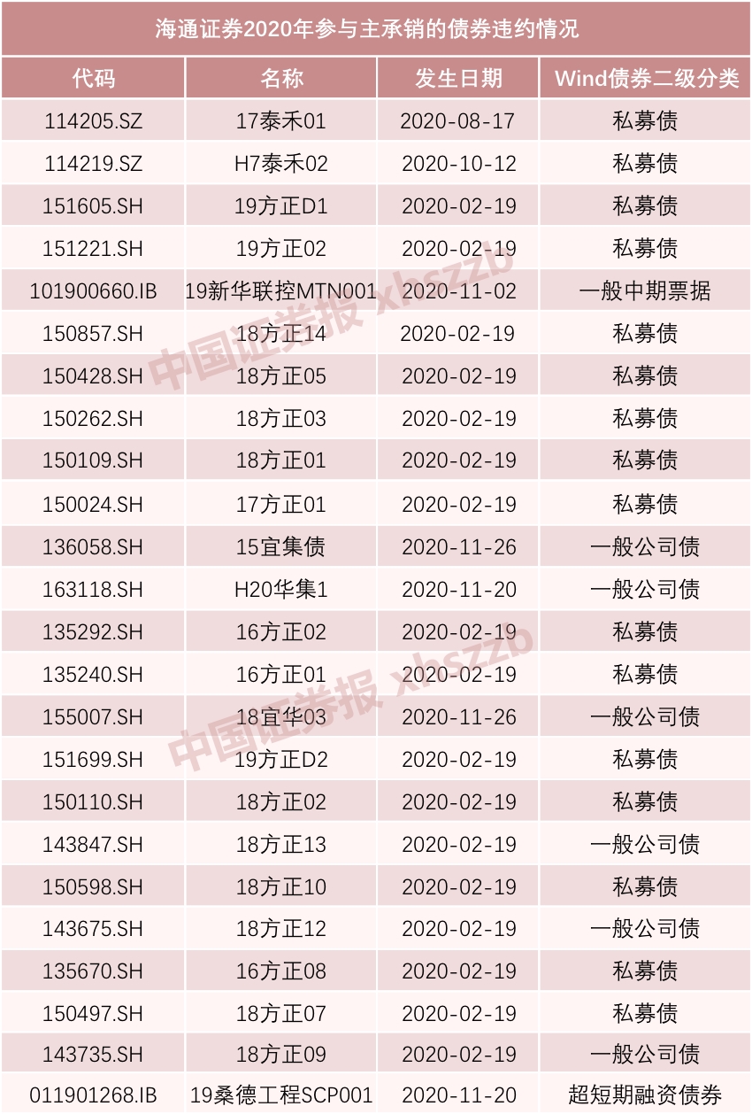 Wind数据显示,海通证券是今年以来参与主承销的债券违约次数最多的券商,共计24次(包括本息展期),涉及北大方正、新华联控股等公司。