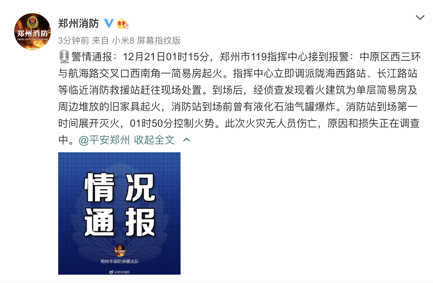 12月21日,有网友发布消息,称郑州西三环与航海路附近有爆炸声,疑似附近加油站爆炸。