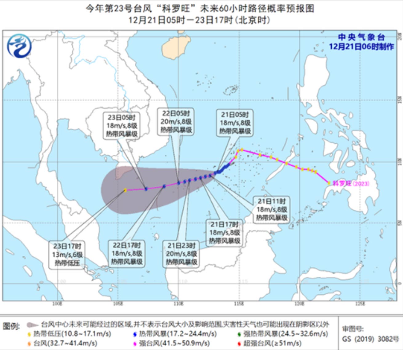 受“科罗旺”和冷空气的共同影响,12月21日08时至22日08时,东海南部海域、台湾海峡、巴士海峡、台湾以东洋面、北部湾、南海大部海域及西沙群岛、中沙群岛和南沙群岛、福建中南部沿海将有6~8级大风,阵风可达9级,其中南海西南部的部分海域风力有9级,阵风可达10~11级。降水方面,21日08时至22日08时,西沙群岛、中沙群岛、南沙群岛将有中到大雨,局部有暴雨(50~90毫米),过往船只需及时回港避风雨。