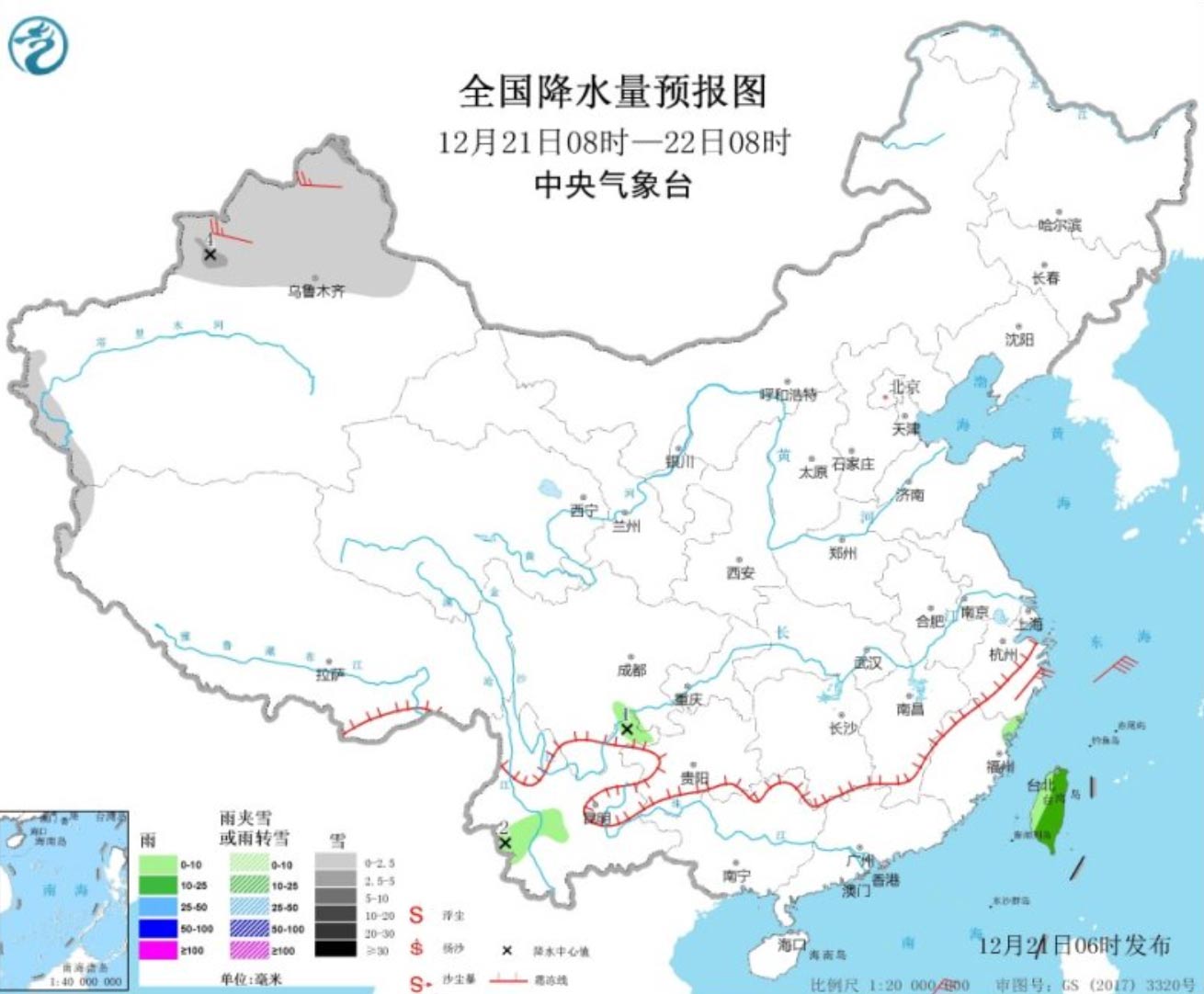今天,全国大部雨雪稀少,阳光占据天气舞台“C位”,仅在新疆地区会出现降雪天气。中央气象台预计,今天新疆北部和西南部、西藏西部的部分地区有小到中雪。云南西部、台湾岛等地的部分地区有小到中雨。