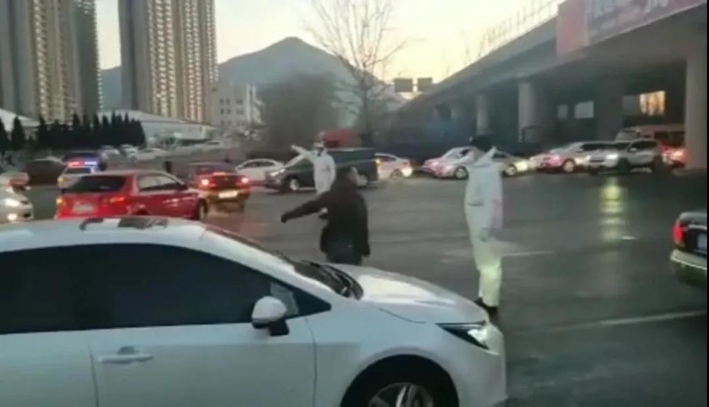 今天早上,进出金普新区的道路已被封闭管控,警方正指挥来往车辆调头返回。