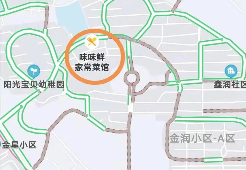 据地图导航APP显示,目前“味味鲜家常菜馆”周边的多条道路已经采取了封闭措施。