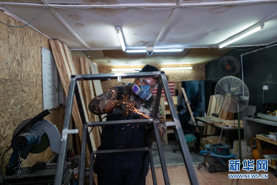 12月17日,在马来西亚吉隆坡的“KAWOOD”工作室,穆罕默德·哈菲兹·乔哈里在打磨铁架子。新华社记者 朱炜 摄