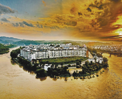 蚺城山与儒学山牵手,向着锦屏山蜿蜒,环抱着的星江生发出无尽的气象。粼粼波光之中,古老的渡口埠头还在,朱熹命名的廉泉清澈如初,然而星江河畔却早已是景观桥拱立飞架。古朴的婺源延展开来,呈现出一江两岸的城区格局。