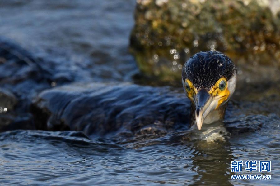 12月20日,一只鸬鹚在科威特杰赫拉省海边觅食。新华社发(加齐摄)