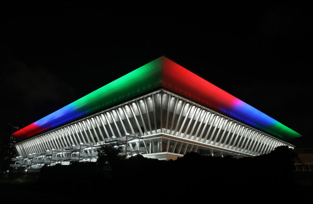 东京残奥会游泳比赛场馆水上中心夜景。新华社记者杜潇逸摄