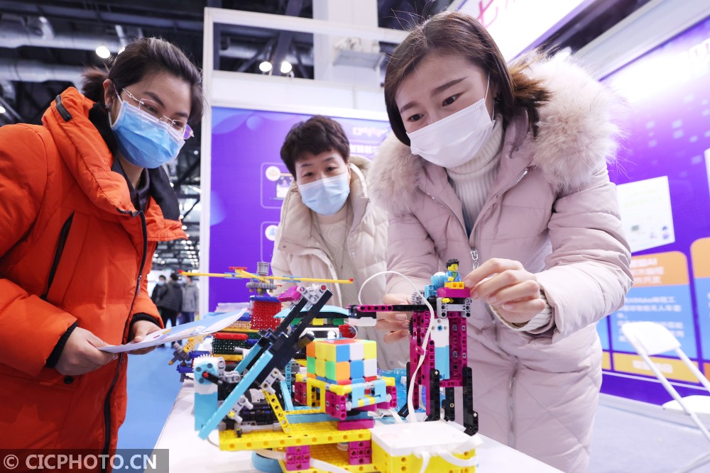 ↑2020年12月18日,在北京国家会议中心,工作人员在演示自主研发的智能化编程工具。CICPHOTO/陈晓根 摄