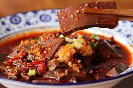 辣子、蒜、羊血,这是一道名称极为直白的陕西小吃,在咸阳地区尤为受欢迎。辣子蒜羊血,其实可以算作是陕西另外一道名吃粉汤羊血的兄弟姊妹,同出一门,却各有性格外貌。一碗做好的辣子蒜羊血,端上来时,满碗皆红,鲜红的辣椒油涂满黑红的羊血,椒辣与蒜辣扑鼻,香味四溢。