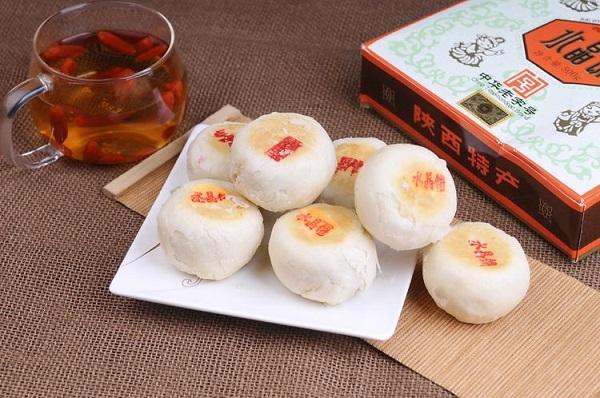 水晶饼是陕西特色小吃,水晶饼金面银帮,起皮掉酥,口感油多而不腻,糖重而渗甜,具有浓郁的玫瑰芳香。它是由白糖、冰糖、青红丝、猪板油、核桃仁和玫瑰花瓣等多种食材的结晶,其中青红丝由橘子皮、萝卜和木瓜等制成。饼皮层层堆叠起来,色白如雪,入口即化。