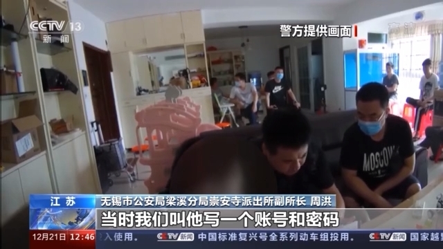 无锡市公安局梁溪分局崇安寺派出所副所长 周洪:在抓捕现场,我们发现了犯罪团伙的头目,他的年龄并不大,文化层次也不高,当时我们叫他写一个账号和密码,他说他不会写,需要我们把手机给他,通过手机上面的字母来打上去以后,然后再誊写下来交给办案民警,就是也很感慨,连一个账号和密码都不会写的一个人,能够有这么多的资产,我们也非常地惊讶。