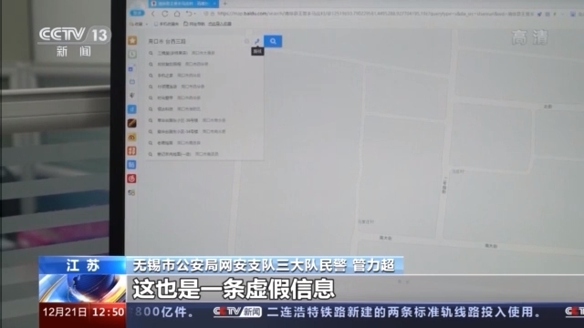 无锡市公安局网安支队三大队民警 管力超:以咱们无锡为例, 搜江阴市山水倾城, 江阴就没有这个地方,除了这个地址我们再来看一下省外的一些地址,河南周口市台西三路,咱们来搜一下有没有这么一个地址,台西三路就没有这么一条马路 ,也是一条虚假信息。