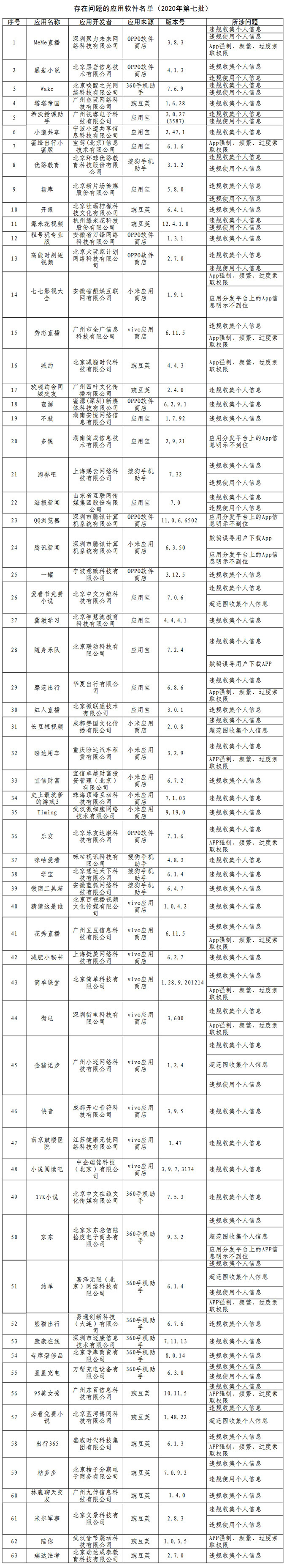 附件:存在问题的应用软件名单(2020年第七批).docx