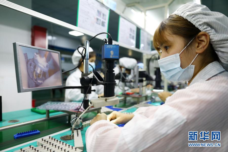12月21日,工人在淮北市烈山经济开发区一家手机马达生产企业的生产线上忙碌。新华社发(万善朝 摄)