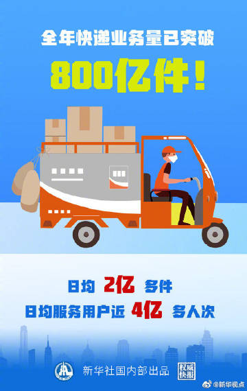 【#新华微评#:快递量“四连跳”凸显中国经济活力】四个月“四连跳”,我国快递年业务量日前首次突破800亿件,再创新记录。稳居世界第一的快递业务量和快递业务增速,凸显中国经济的生机活力。小小快递包裹,折射发展大势。快递量持续攀升的背后,是加快恢复的经济,是不断释放的消费潜力。让扩大内需的政策更给力,引导消费的制度更有效,2021年的中国经济值得期待,老百姓的日子会越来越好。