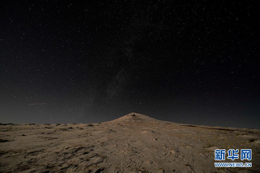 冬日夜间,位于内蒙古乌兰察布市察哈尔右翼后旗的乌兰哈达火山群上空繁星闪烁,景色迷人。