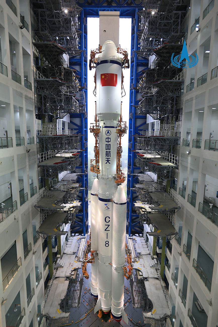 这是在中国文昌航天发射场发射区垂直测试厂房拍摄的长征八号遥一运载火箭(12月16日摄)。新华社发(国家航天局供图)