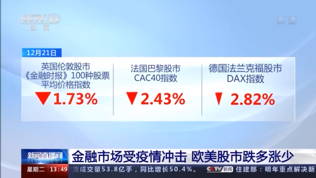 英国出现变异新冠病毒一事对国际金融市场造成冲击。21日,欧洲股市出现普遍下跌,美国主要股市也受此波及,跌多涨少。