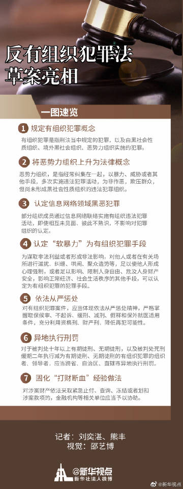 【一图速览┃#反有组织犯罪法草案亮相#】22日,反有组织犯罪法草案首次提请全国人大常委会会议审议。为预防和惩治有组织犯罪,草案作出哪些规定?如何提升扫黑除恶法治化、规范化水平?戳图速览↓