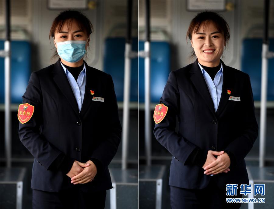 这是12月18日拍摄的郑州公交二公司B38路公交车车长黄菲肖像(拼版照片)。