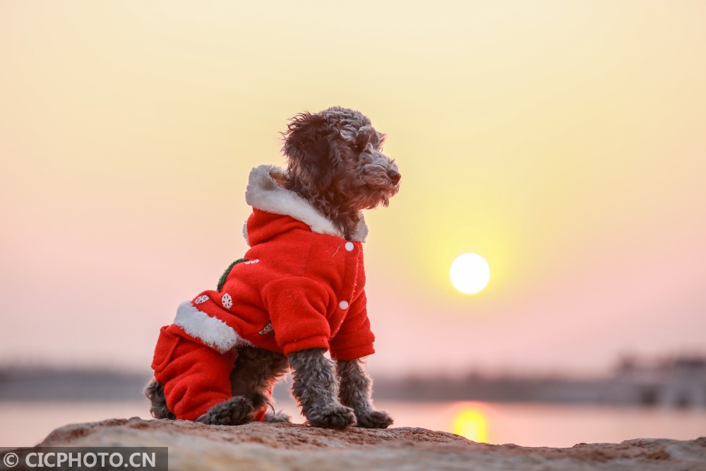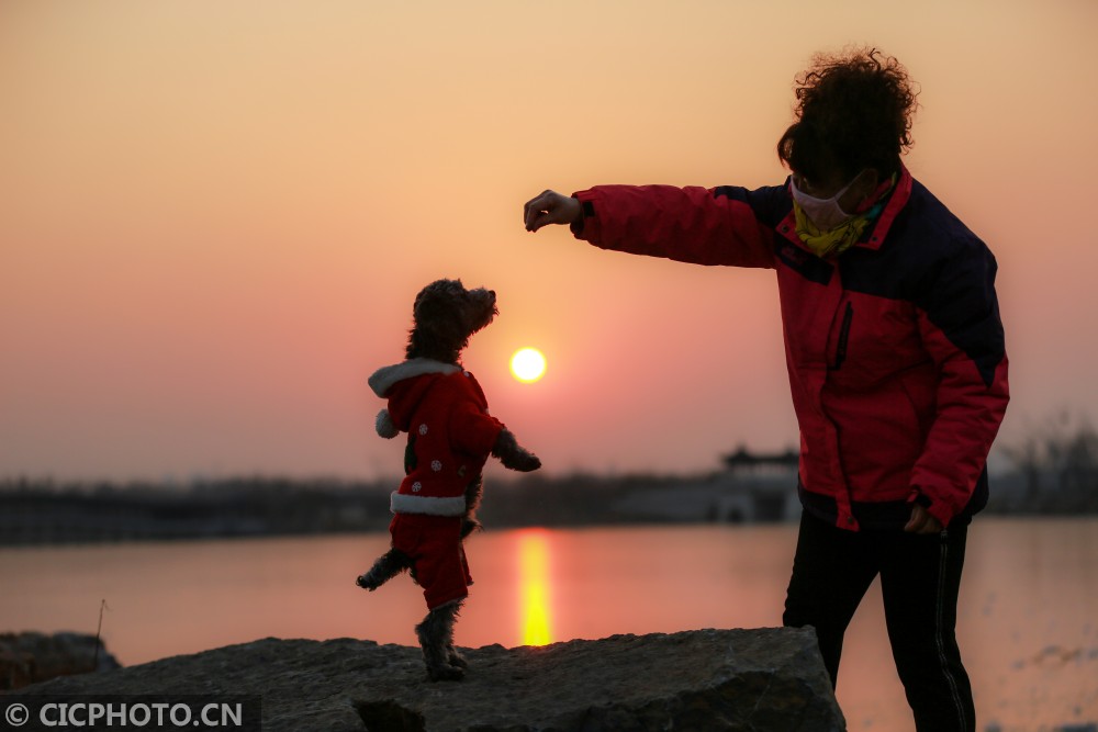 ↑2020年12月21日,在河北省邢台市园博园,一只宠物狗享受冬日暖阳。CICPHOTO/柴更利 摄
