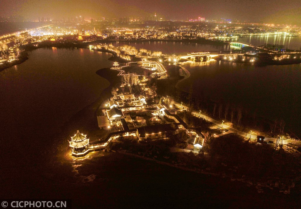 ↑2020年12月21日,在河北省邢台市园博园航摄的冬日夜色。CICPHOTO/柴更利 摄