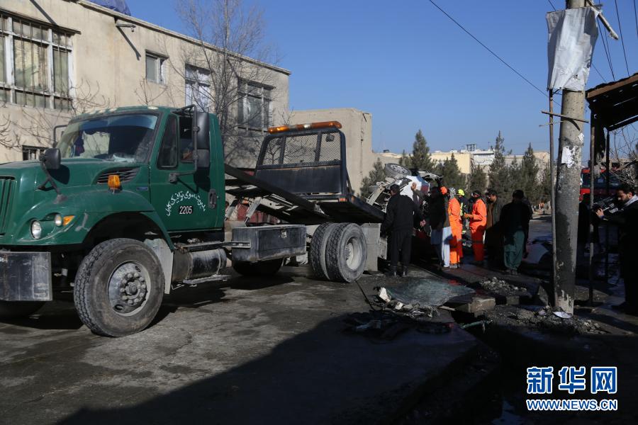 12月22日,在阿富汗首都喀布尔,工作人员清理爆炸现场。
