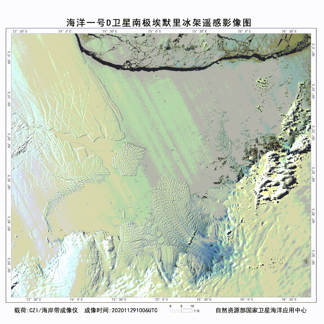 下面,跟随海洋一号C/D卫星遥“瞰”埃默里冰架冰情: