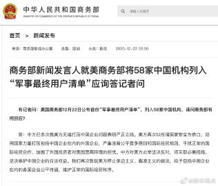 商务部新闻发言人就美商务部将58家中国机构列入“军事最终用户清单”应询答记者问