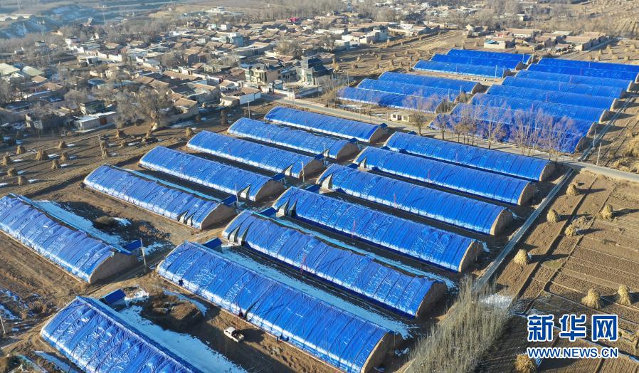 12月21日拍摄的临夏县一农业园区的温室大棚(无人机照片)。