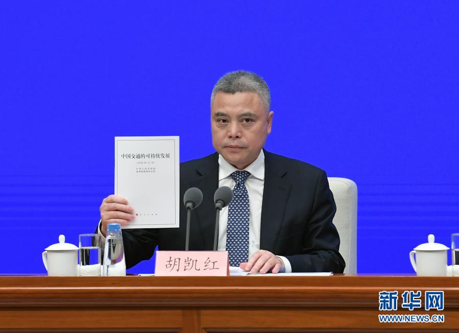 12月22日,国务院新闻办公室新闻发言人胡凯红在发布会上展示《中国交通的可持续发展》白皮书。