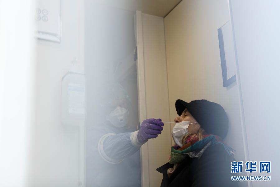 12月22日,一名女子在斯洛文尼亚首都卢布尔雅那接受新冠病毒检测取样。当地时间22日,斯洛文尼亚在全国多地开始大规模自愿新冠病毒检测工作,检测将持续到12月24日。