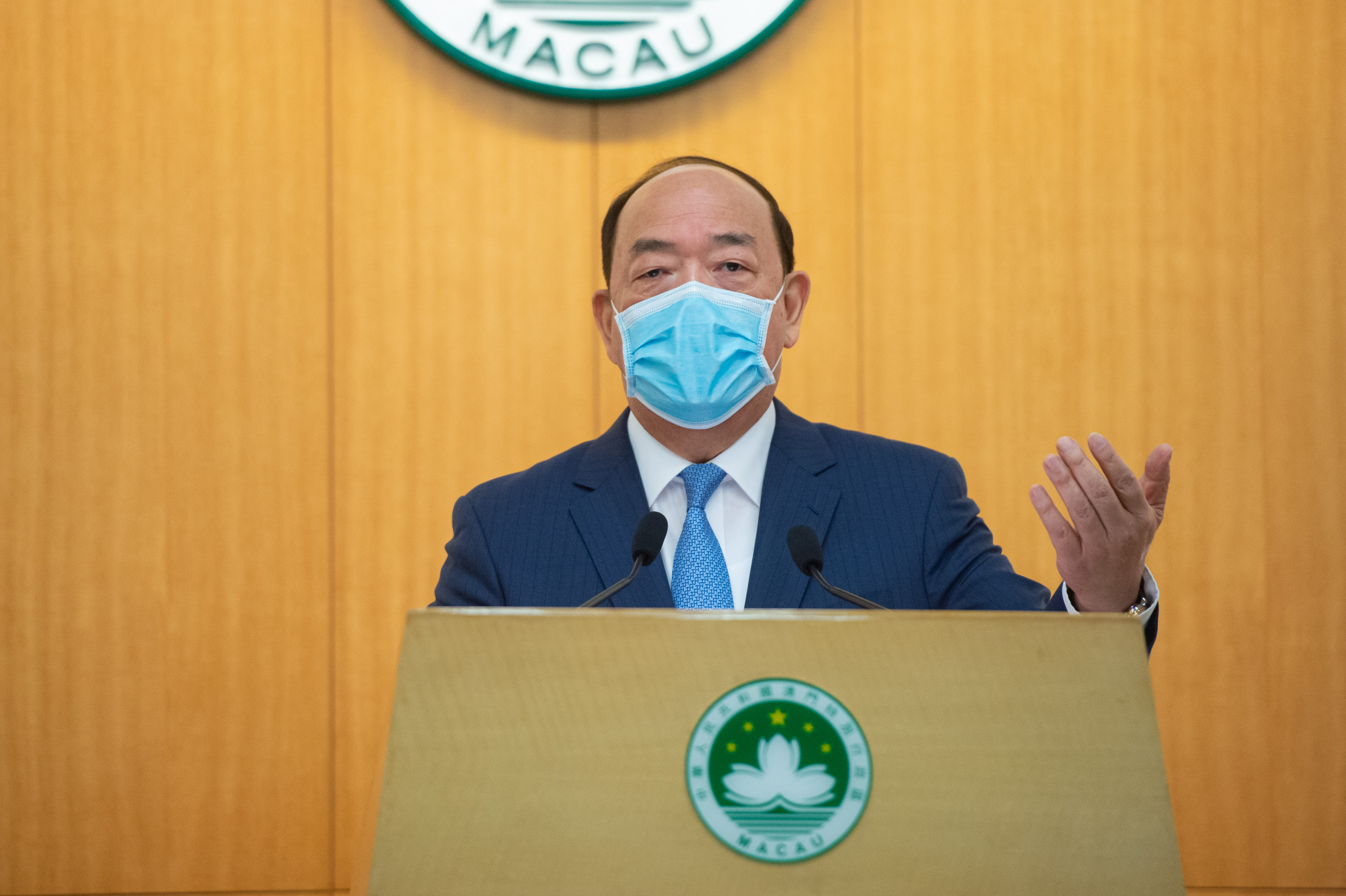 2020年11月16日,澳门特区行政长官贺一诚回答传媒问题。新华社记者 张金加 摄