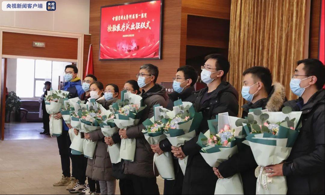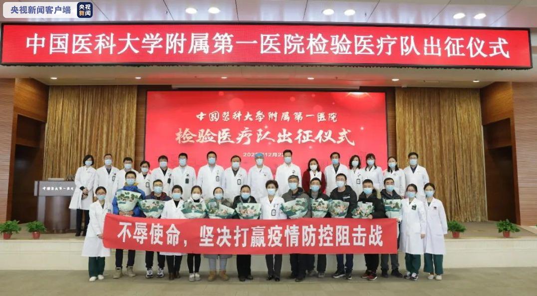 12月22日中午12时30分,带着领导、同事的嘱托和必胜的信念,中国医科大学附属第一医院支援大连检验医疗队出发奔赴大连。(总台央视记者 李承泽)