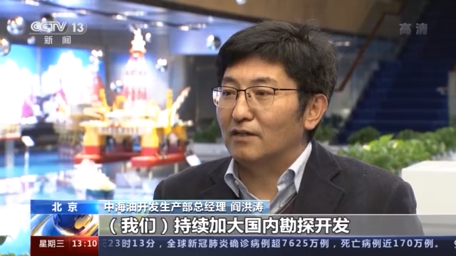 中海油开发生产部总经理 阎洪涛:在今年我们面对疫情和低油价双重的挑战,(我们)持续加大国内勘探开发和科技公关攻关力度,到今年年底我们的海上投资会超过600亿。国内的原油产量同比去年会增加240万吨,这个增量占全国总增量的80%以上。