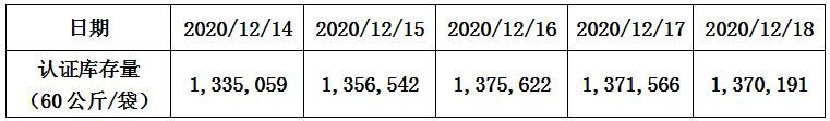 表1:ICE(纽约)“C”型咖啡认证库存量