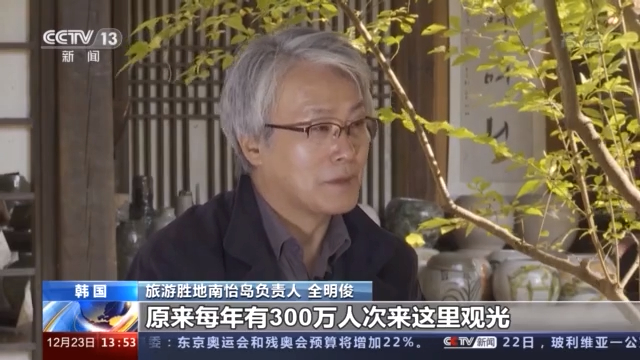 韩国旅游胜地南怡岛负责人 全明俊:原来每年有300万人次来这里观光,今年的参观人数只有去年的40%。