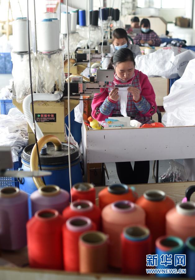 12月23日,工人在位于陶朱街道的诸暨市奥登针纺有限公司缝头车间里忙碌。这家外贸企业预计第四季度销售额比去年同期增长10%左右。