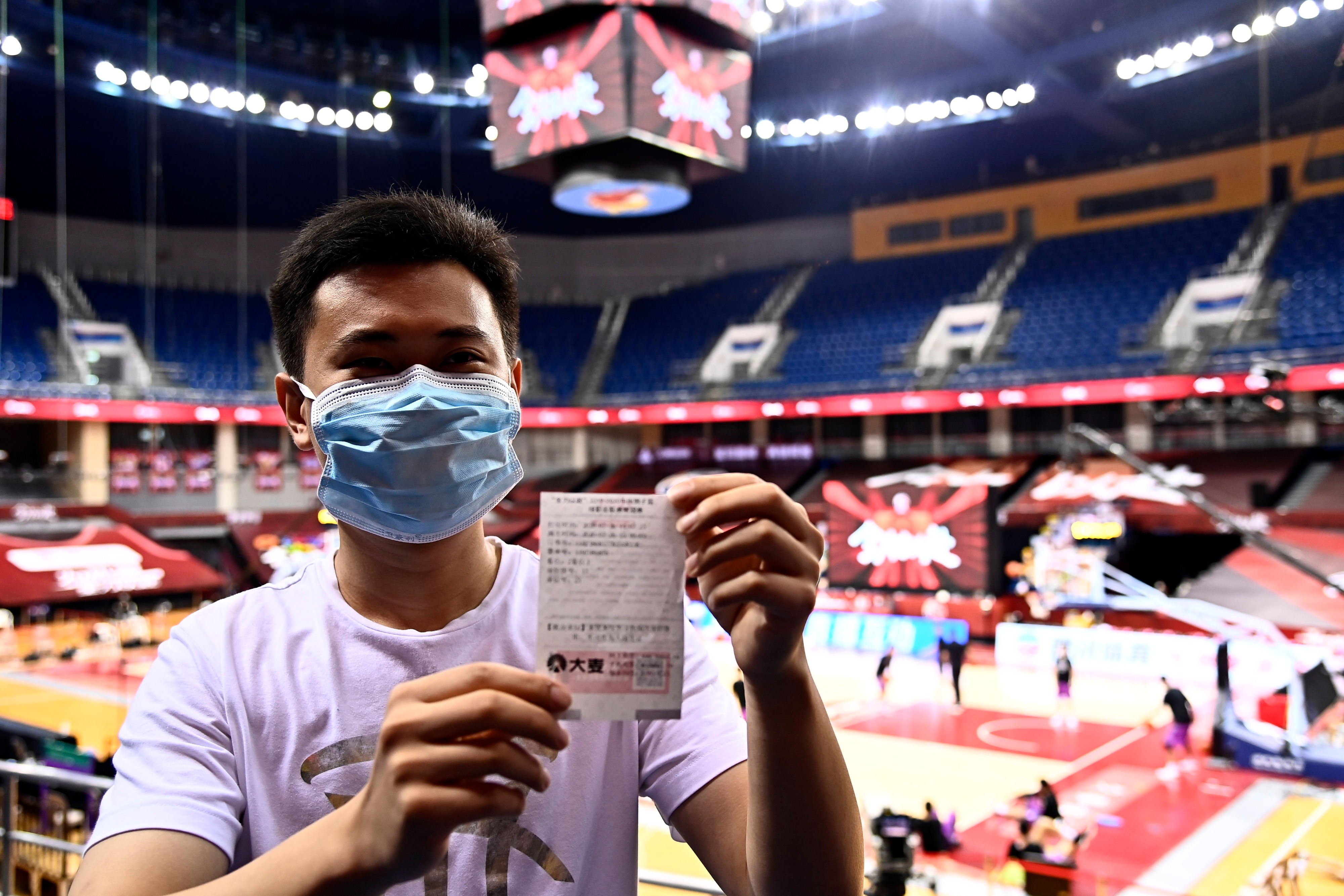 穿着白色短袖、戴着口罩的苏柯帆,展示着自己的纸质球票,满眼兴奋之情——“CBA联赛复赛第一位入场观众”,就这样被新华社记者的镜头记录了下来。