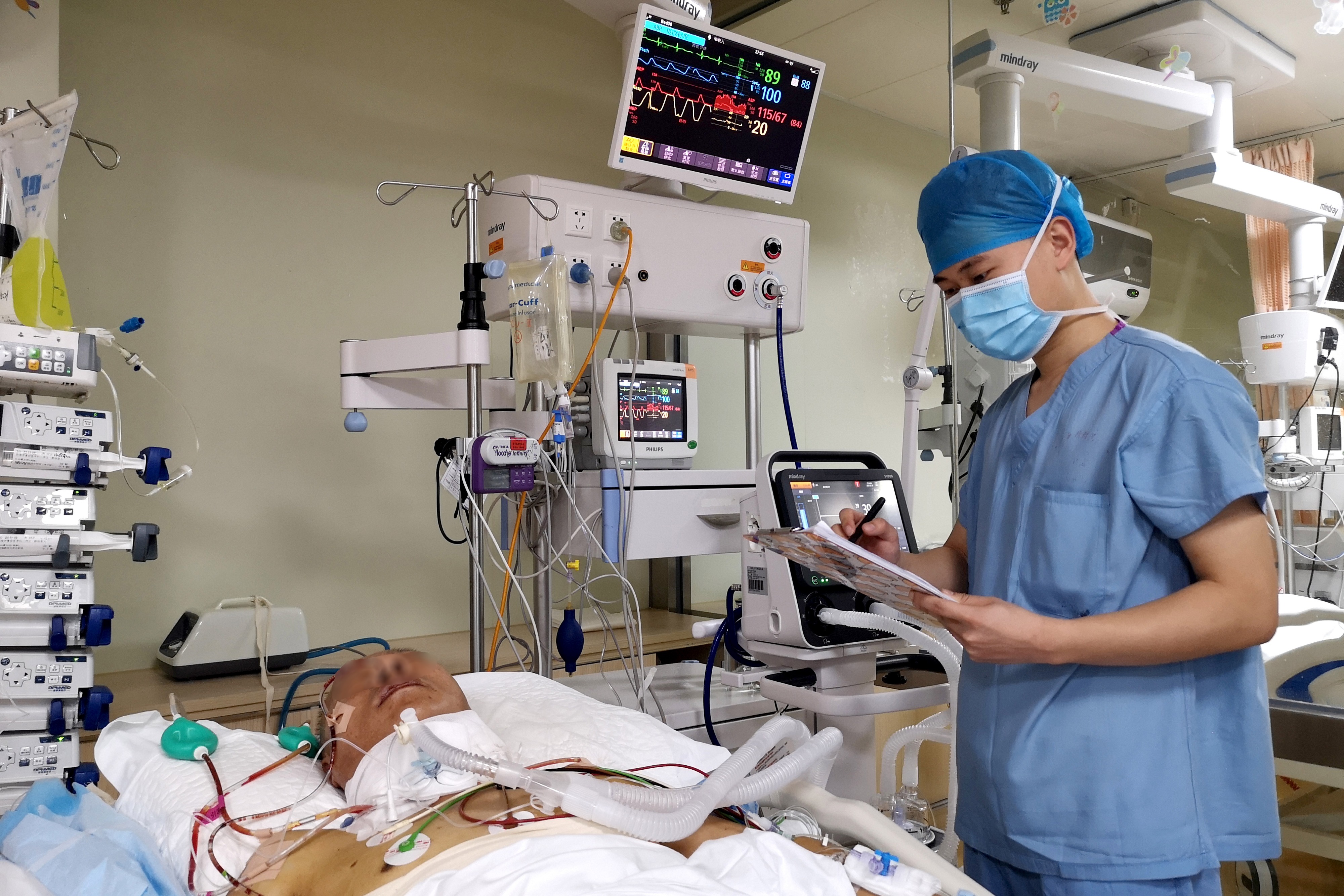12月18日,青岛大学医学院研究生苏柯帆在医院里实习。