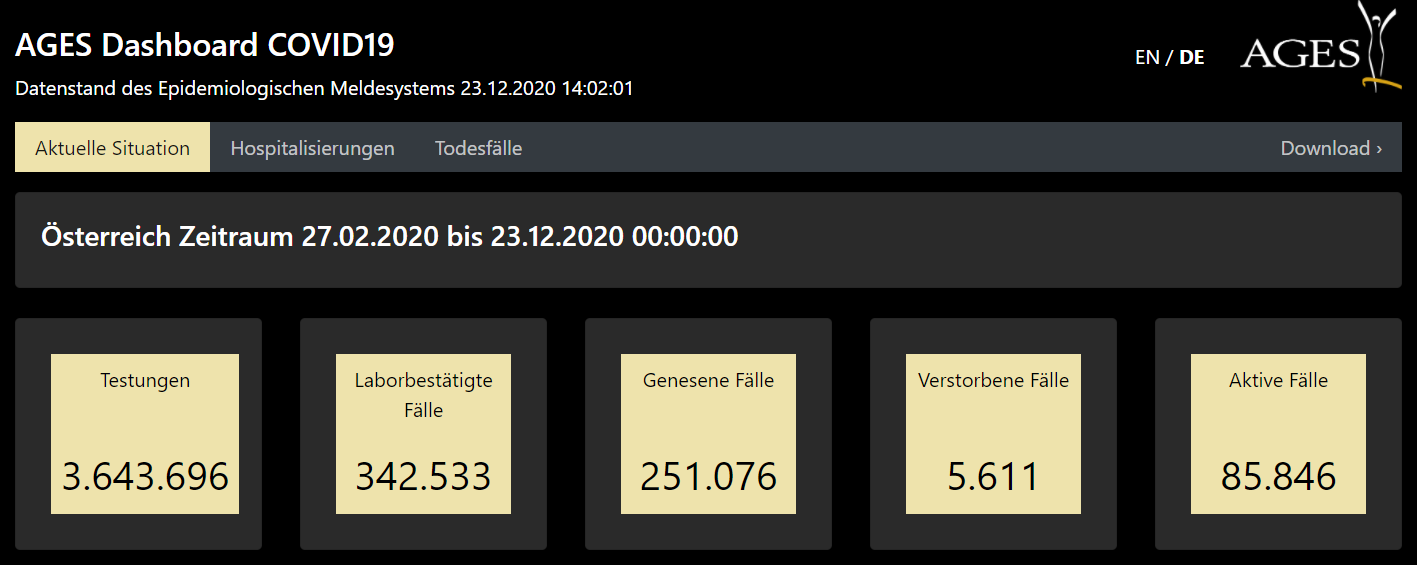 当地时间12月23日14时,奥地利卫生部数据显示,过去24小时该国新增新冠肺炎确诊病例2600例,累计确诊342533例;新增死亡病例141例,累计死亡5611例;累计治愈251076例。
