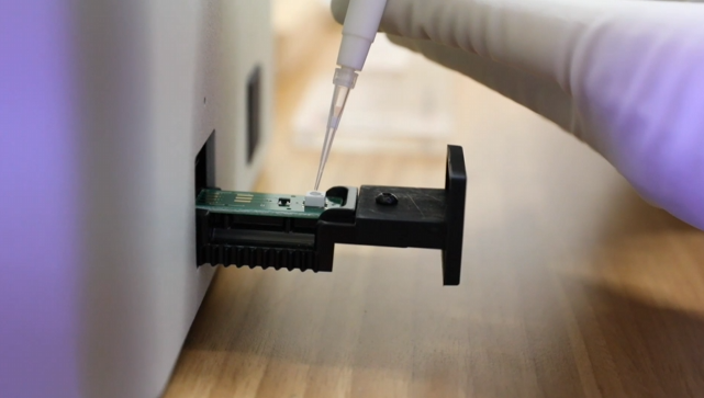 医护人员在采集患者咽拭子标本后,将其存放于特制病毒保存液中,该种保存液可对新冠病毒进行100%灭活。再由护士通过专用标本运输箱将标本转运至实验室。标本进入实验室后,由检验员提取病毒核酸,通过微型PCR仪对病毒核酸进行扩增分析,最快一个半小时检测出结果,准确率达到95%以上。