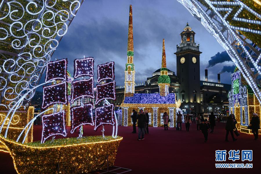 新年临近,俄罗斯首都莫斯科点亮各式彩灯,为城市营造节日的氛围。