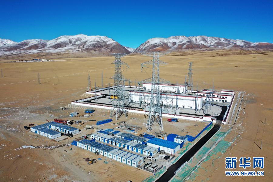 这是11月27日拍摄的西藏阿里与藏中电网联网工程霍尔220千伏变电站(无人机照片)。新华社记者 詹彦 摄