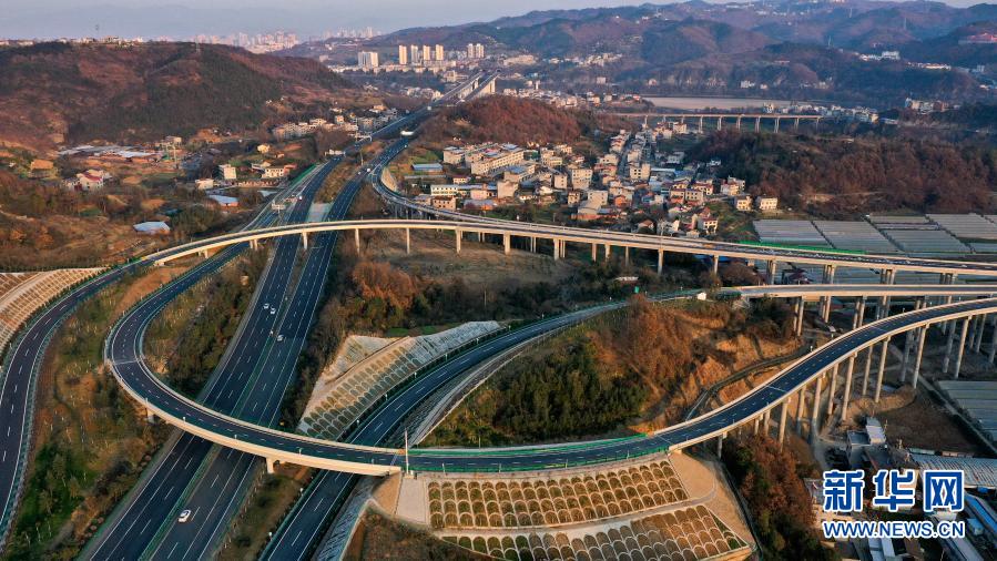 这是12月23日拍摄的安岚高速公路与十天高速连接处(无人机照片)。