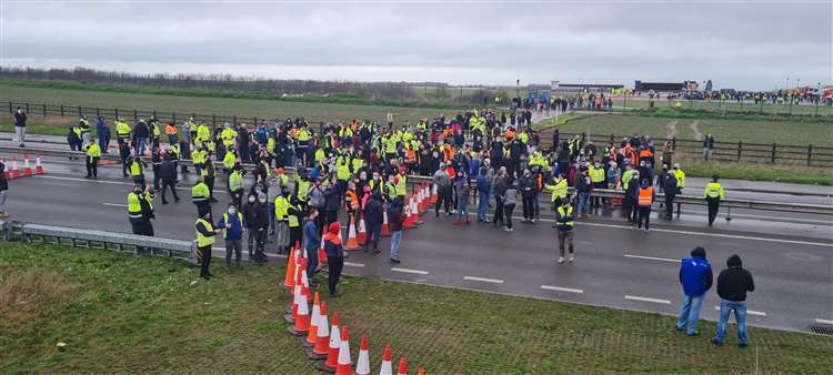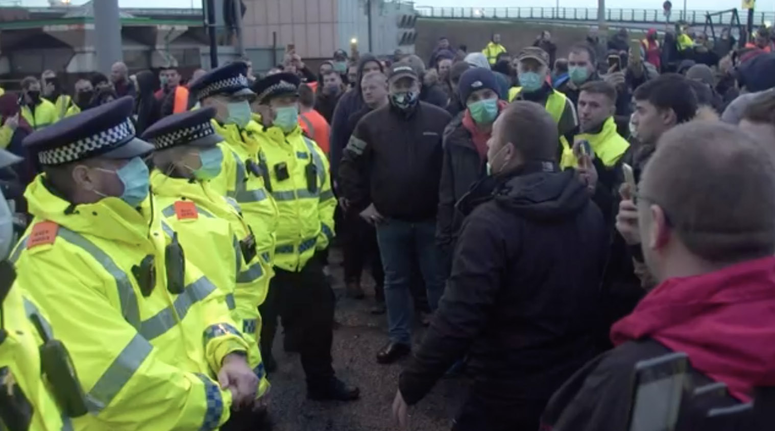 即便如此,卡车司机们仍面临一个困难:他们不知道去哪里检测。法国要求所有入境人员提供检测证明,但英国在一开始并没有提供足够的检测设施。一名来自德国的司机接受路透社采访说:“我们没有收到任何消息,大家都变得十分焦虑”。于是,司机开始通过鸣笛和反复开关车灯的方式抗议,以示不满。部分情绪激动的司机还在现场举行抗议活动,甚至与警方发生冲突。警方表示,有一名司机因阻塞道路被逮捕。