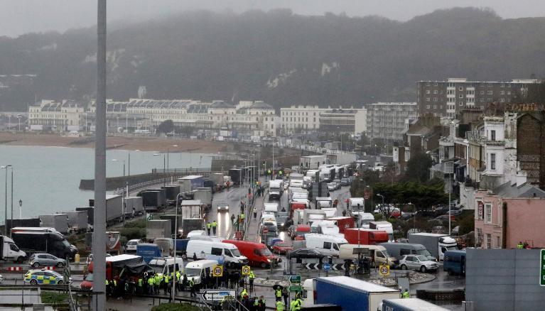 受此影响,大批货运卡车司机无法经由法国返回欧洲大陆。在连接英国和法国的重要港口城市多佛,则出现了数千辆货运卡车大排长龙的景象。