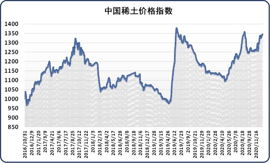 新华财经北京12月24日电(刘星麟)24日,中国稀土价格指数报1344.95点,较前一工作日上涨4.77点,涨幅为0.36%。氧化铽价格上扬,持货商惜售观望,分离企业报价坚挺,下游企业询单稍显活跃,实际成交量一般。