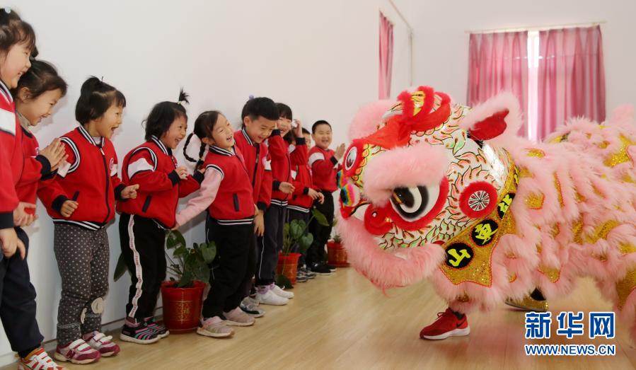 当日,山东省东营市东营区文华幼儿园开展“舞狮迎新年”活动,邀请民间舞狮艺人为孩子们表演舞狮,让孩子们感受传统舞狮艺术魅力,迎接新年到来。