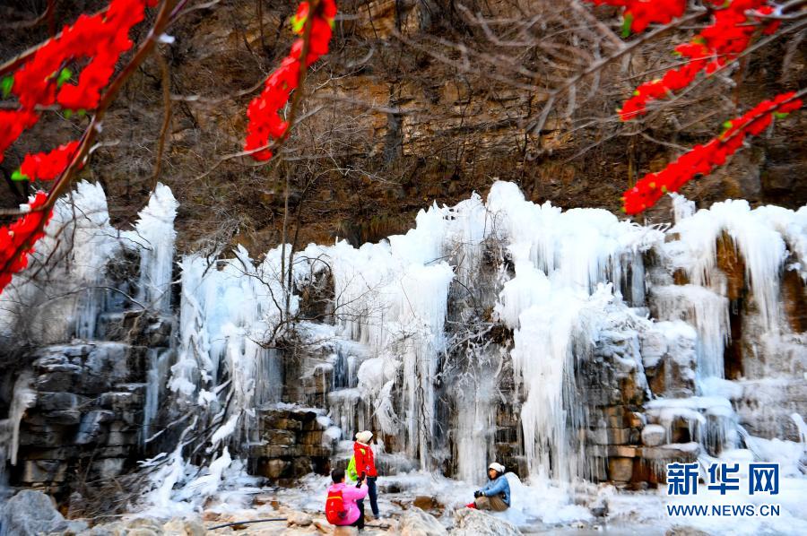 寒冬时节,河南焦作云台山景区形成多处冰瀑景观,吸引众多游客前来观赏。
