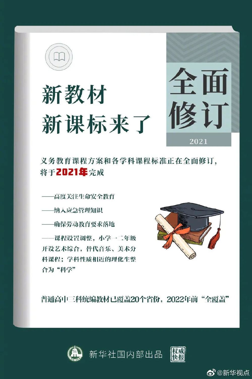 义务教育课程方案和各学科课程标准正在全面修订,将于2021年完成。